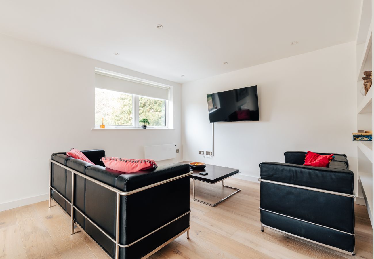 Beautifully decorated modern first floor apartment with 2 spacious kingsize bedrooms, 1 with ensuite and 1 main bathroom, overlooking private communal gardens. Recently refurbished, this 900 sq foot apartment includes ample living space within an open plan living/dining/kitchen area and includes private parking. The apartment comes complete with gas central heating, flatscreen televisions in all rooms and high-speed WiFi.